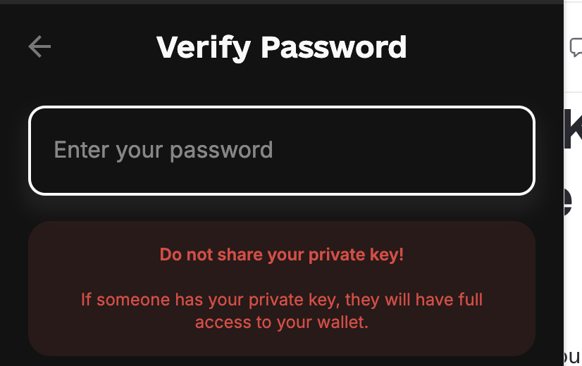 - After verifying your password, you can securely view your private key and seed phrase.