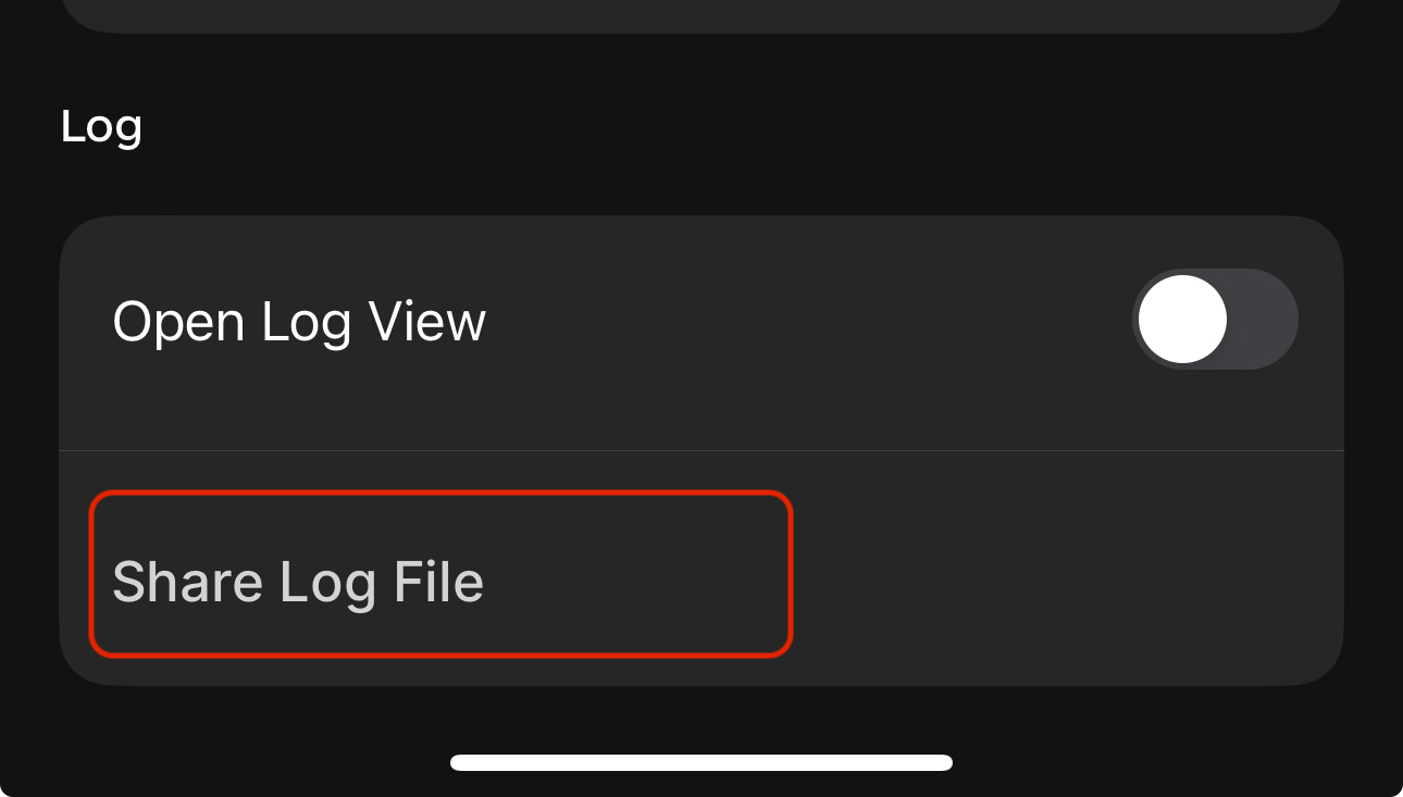 - For iOS Users: Tap the Share Log File button.